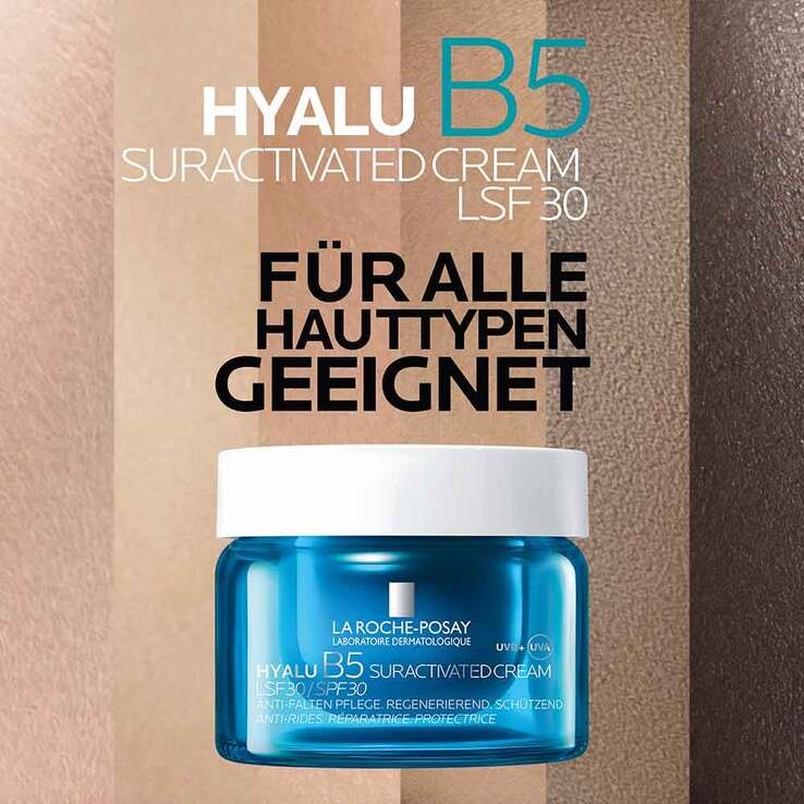 Die La Roche Posay Hyalu B5 Suractivated Cream mit LSF 30 ist eine Ergänzung zur Anti-Aging Hautpflege. Angereichert mit Hyaluronsäure, Vitamin B5 und Ectoin mildert die Creme Falten, stärkt die Hautschutzbarriere, spendet intensiv Feuchtigkeit und beruhigt empfindliche Haut. Zusätzlich bietet der integrierte LSF 30 einen effektiven Sonnenschutz vor UVA- und UVB-Strahlen. So sorgt die Creme für eine straffere, glattere und aufgepolsterte Haut. Zudem fühlt sich die reichhaltige, nicht komedogene Textur angenehm auf der Haut an und sorgt für ein spürbar geschmeidiges Hautgefühl.