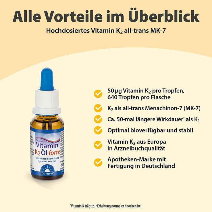 - 50 µg Vitamin K2 (all-trans MK-7) pro Tropfen
