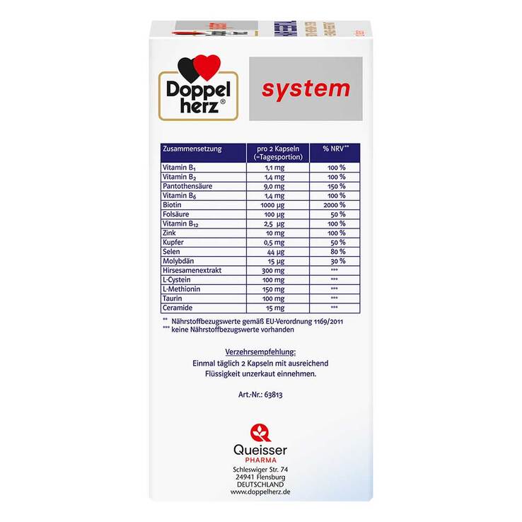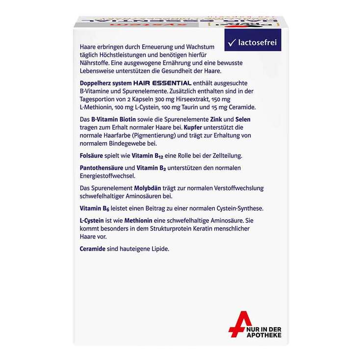 *Biotin, Selen und Zink tragen zur Erhaltung normaler Haare bei. Kupfer trägt zu einer normalen Haarpigmentierung bei. Biotin, Vitamin B2/Riboflavin und Zink tragen zur Erhaltung normaler Haut bei. Folat/Folsäure und Vitamin B12 tragen zur Verringerung von Müdigkeit und Ermüdung bei. Pantothensäure, Vitamin B1/Thiamin und Vitamin B6 tragen zu einem normalen Energiestoffwechsel bei.
