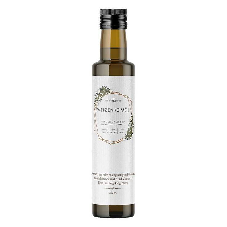 Genau hier setzt das Weizenkeimöl von Nordic Pure an: Schonend kaltgepresst aus den Keimen des Weizenkorns, liefert es reichlich ungesättigte Fettsäuren und natürliches Vitamin E, das dazu beiträgt, die Zellen vor oxidativem Stress zu schützen. Zusätzlich enthält es von Natur aus Spermidin, einen pflanzlichen Bestandteil, der traditionell in Weizenkeimen vorkommt. So verbindet es ernährungsbewusstes Genießen mit dem guten Gefühl, etwas Sinnvolles für den eigenen Körper zu tun – Tag für Tag.