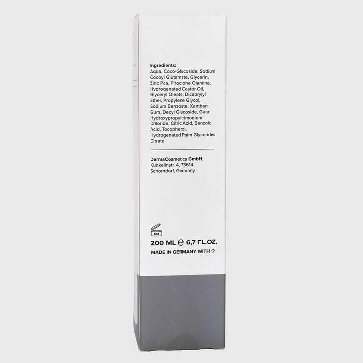 Aqua, Coco-Glucoside, Sodium Cocoyl Glutamate, Glycerin, Zinc Pca, Piroctone Olamine, Hydrogenated Castor Oil, Glyceryl Oleate, Dicaprylyl Ether, Propylene Glycol, Sodium Benzoate, Xanthan Gum, Decyl Glucoside, Guar Hydroxypropyltrimonium Chloride, Citric Acid, Benzoic Acid, Tocopherol, Hydrogenated Palm Glycerides Citrate