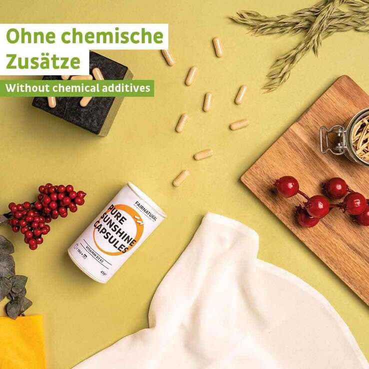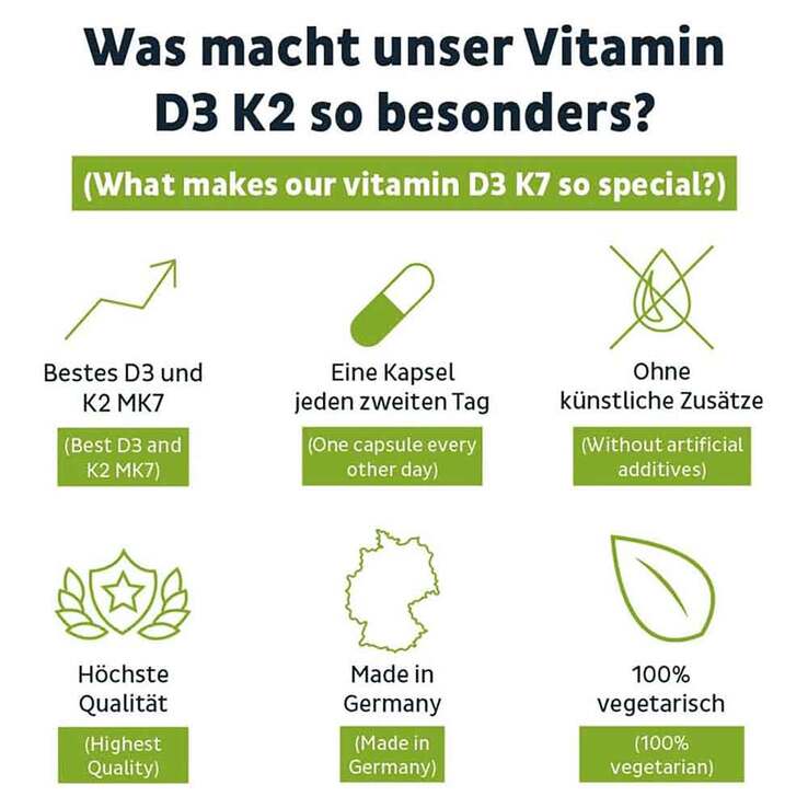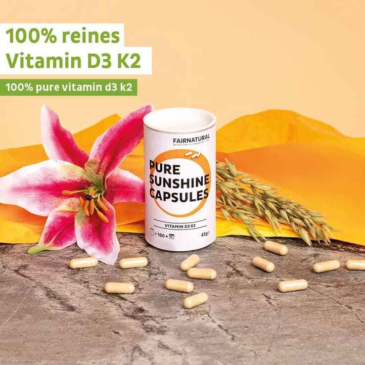 - mit pflanzlichem Vitamin D3 aus Flechten und natürlichem Vitamin K2 (all-trans MK-7 aus Fermentation)