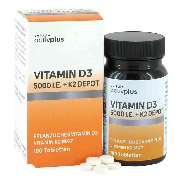 Activplus Vitamin D3 5000 I.E. + K2 Depot Tabletten, 180 St