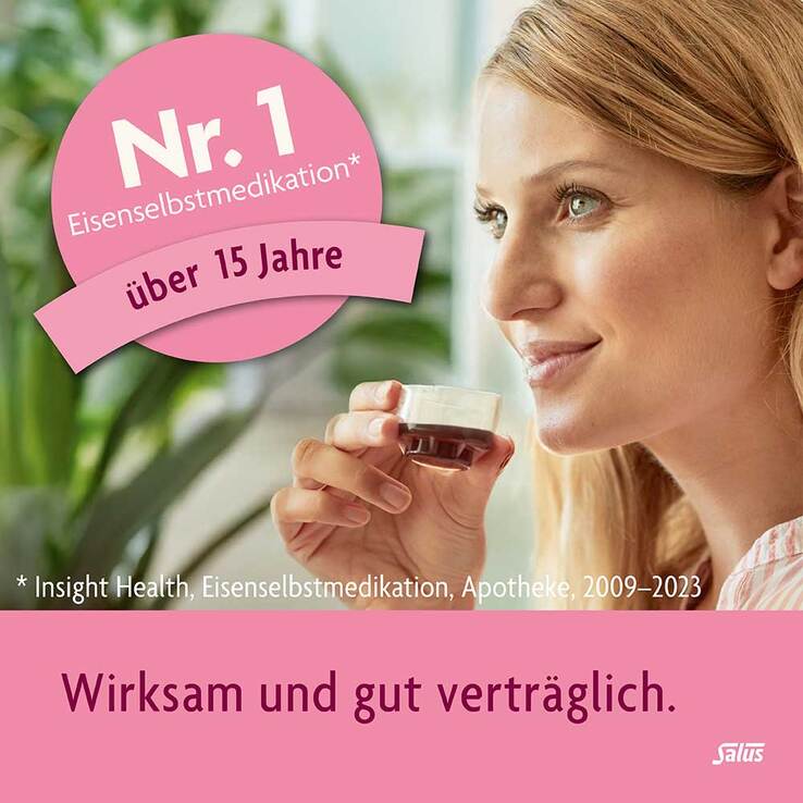 Erwachsene und Heranwachsende ab 10 Jahren nehmen 45 ml pro Tag ein. 45 ml Floradix® mit Eisen enthalten 36,8 mg verwertbares Eisen(II).
