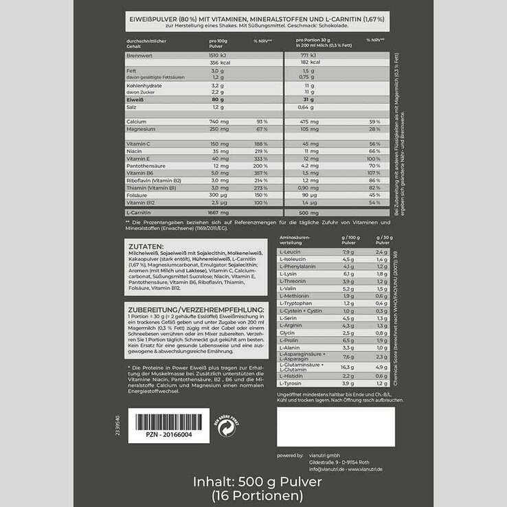 Power Eiweiss plus Protein Shake Pulver Schokolade, 500 g