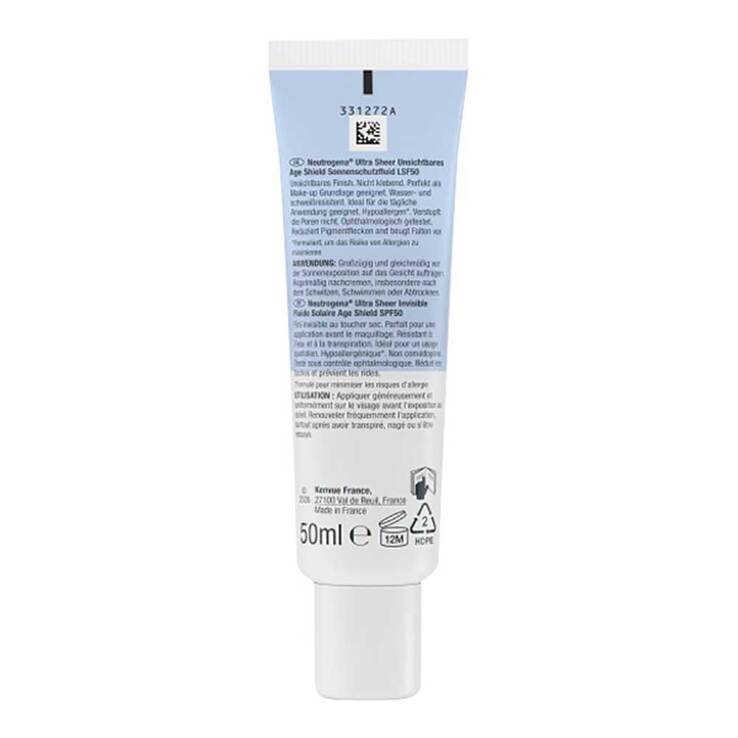 Neutrogena Ultra Sheer unsichtbares Age-Shield Sonnschutzfluid LSF50, 50 ml