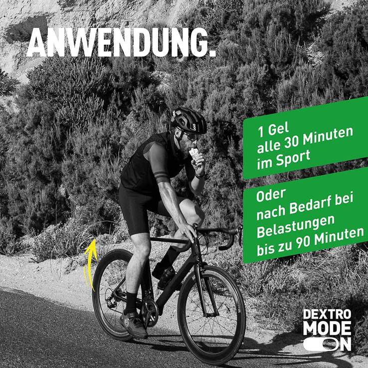 1 Beutel (60 ml) alle 30 Minuten oder nach Bedarf bei Belastungen bis zu 90 Minuten. Maximal 3 Packungen pro Tag.