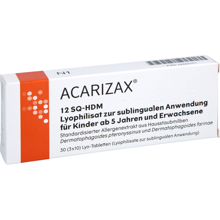 Acarizax 12 SQ-Hdm Lyophil.z.sublimatus Anw.KDR ab5 + Erw, 30 St